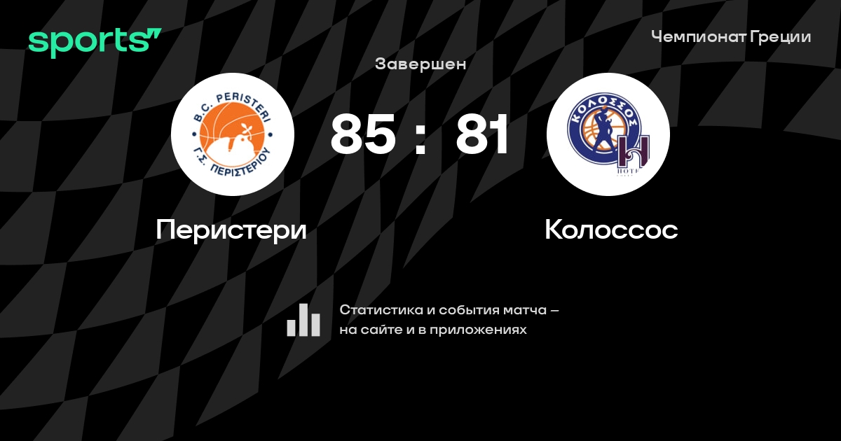 В прошедшем матче в рамках турнира Чемпионат Греции состоялась встреча команд Перистери - Колоссос в городе на стадионе Kleisto Andreas Papandreou