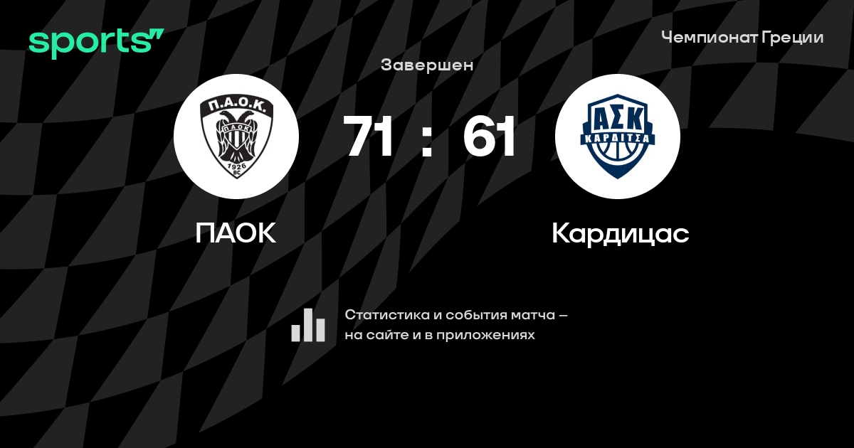В прошедшем матче в рамках турнира Чемпионат Греции состоялась встреча команд ПАОК - Кардицас в городе на стадионе Kleisto Gipedo PAOK