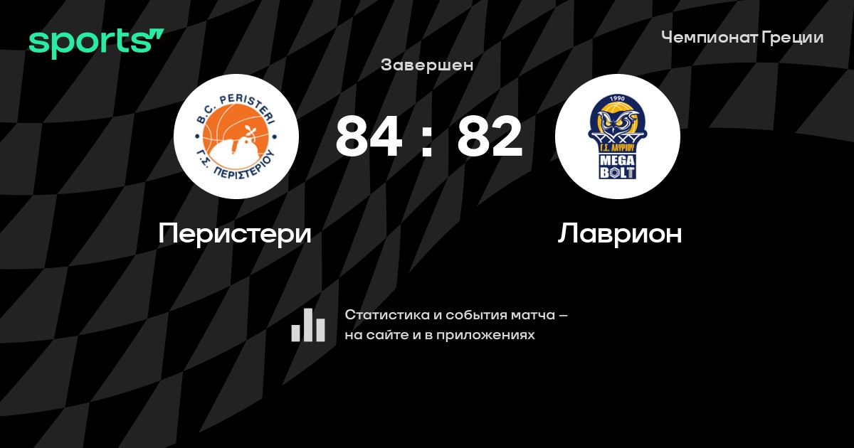 В прошедшем матче в рамках турнира Чемпионат Греции состоялась встреча команд Перистери - Лаврион в городе на стадионе Kleisto Andreas Papandreou