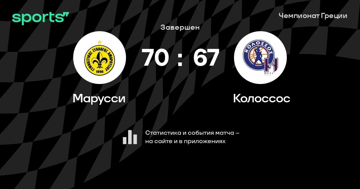 В прошедшем матче в рамках турнира Чемпионат Греции состоялась встреча команд Марусси - Колоссос в городе на стадионе Dimotiko Gimnastirio Amarousiou
