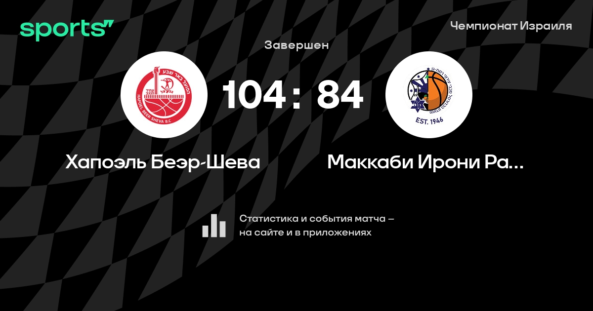 В прошедшем матче в рамках турнира Чемпионат Израиля состоялась встреча команд Хапоэль Беэр-Шева - Маккаби Ирони Рамат-Ган в городе Be'er Sheva на стадионе Conch Arena