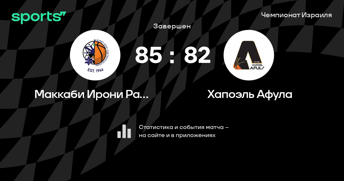 В прошедшем матче в рамках турнира Чемпионат Израиля состоялась встреча команд Маккаби Ирони Рамат-Ган - Хапоэль Афула в городе на стадионе Zisman Sports Hall