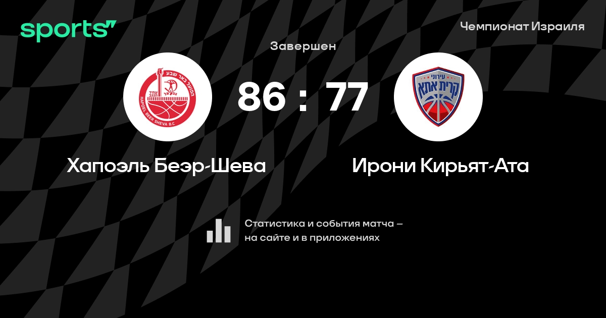 В прошедшем матче в рамках турнира Чемпионат Израиля состоялась встреча команд Хапоэль Беэр-Шева - Ирони Кирьят-Ата в городе Be'er Sheva на стадионе Conch Arena