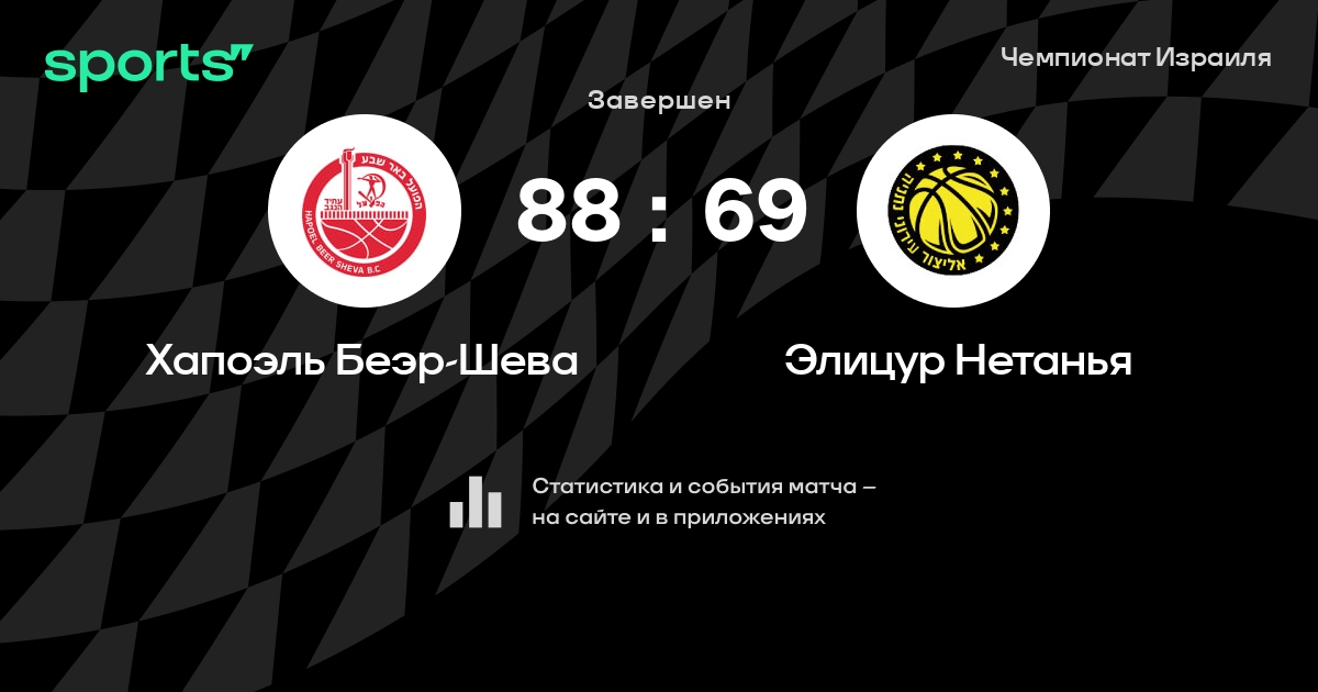 В прошедшем матче в рамках турнира Чемпионат Израиля состоялась встреча команд Хапоэль Беэр-Шева - Элицур Нетанья в городе Be'er Sheva на стадионе Conch Arena