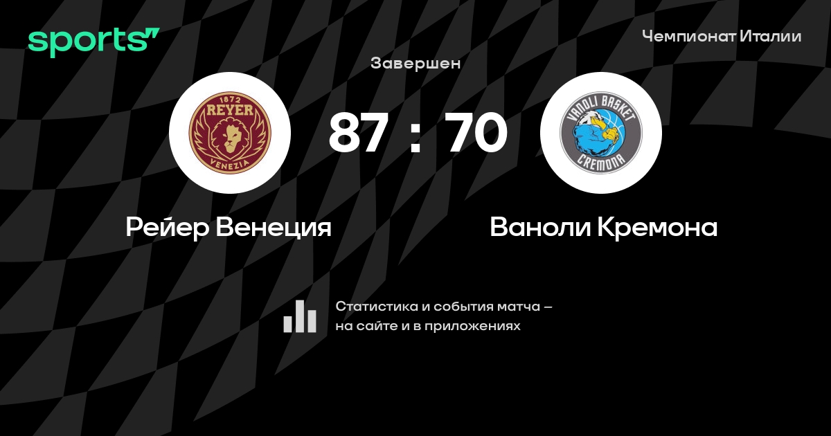 В прошедшем матче в рамках турнира Чемпионат Италии состоялась встреча команд Рейер Венеция - Ваноли Кремона в городе на стадионе Palasport Taliercio