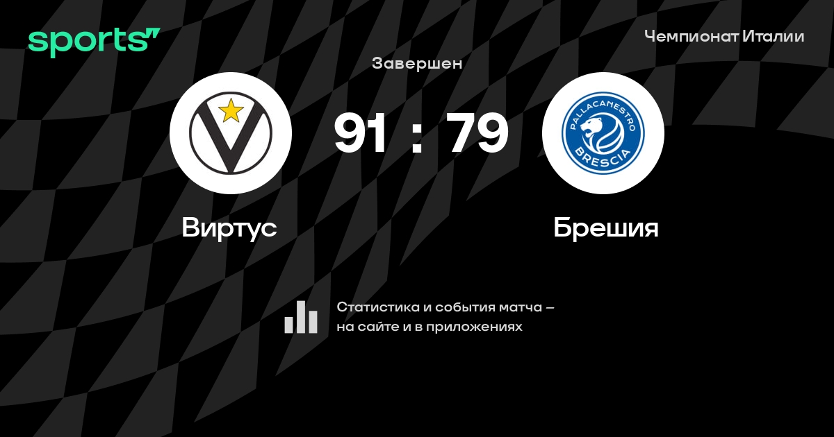 В прошедшем матче в рамках турнира Чемпионат Италии состоялась встреча команд Виртус - Брешия в городе Болонья (Италия) на стадионе Виртус Арена (вместимость - 9980)