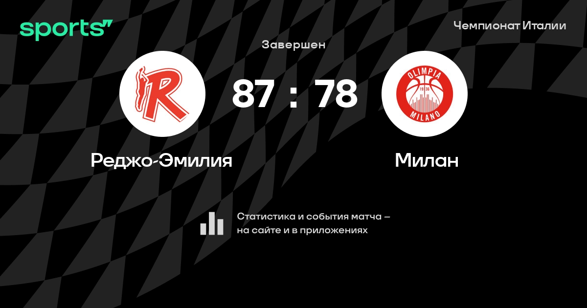 В прошедшем матче в рамках турнира Чемпионат Италии состоялась встреча команд Реджо-Эмилия - Милан в городе на стадионе Palasport Bigi