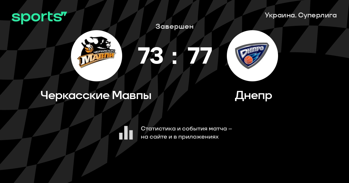 В прошедшем матче в рамках турнира Украина. Суперлига состоялась встреча команд Черкасские Мавпы - Днепр в городе на стадионе Sport Palace Budivelnyk
