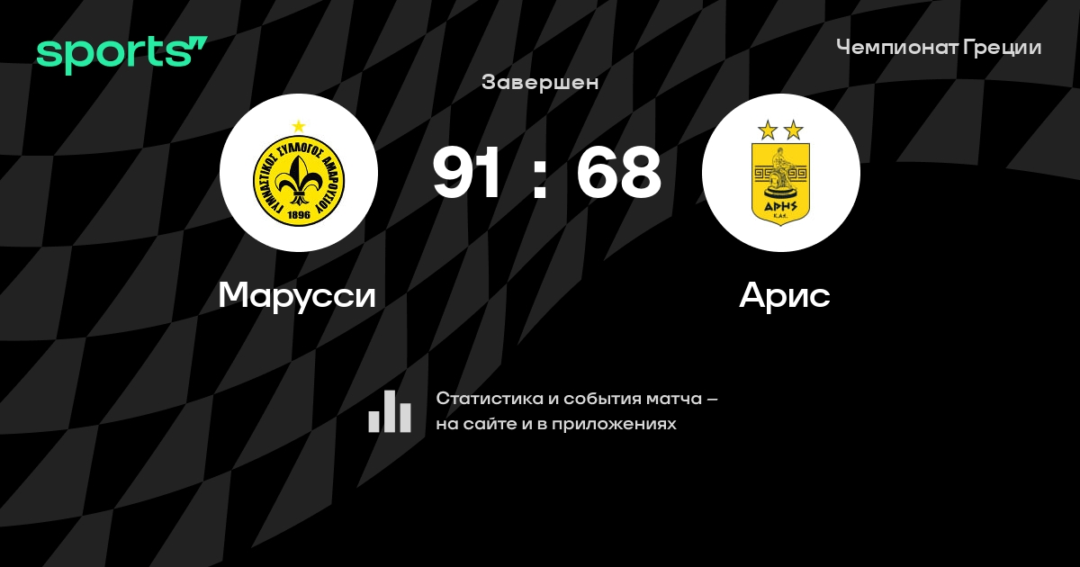 В прошедшем матче в рамках турнира Чемпионат Греции (Плей-аут) состоялась встреча команд Марусси - Арис в городе на стадионе Dimotiko Gimnastirio Amarousiou