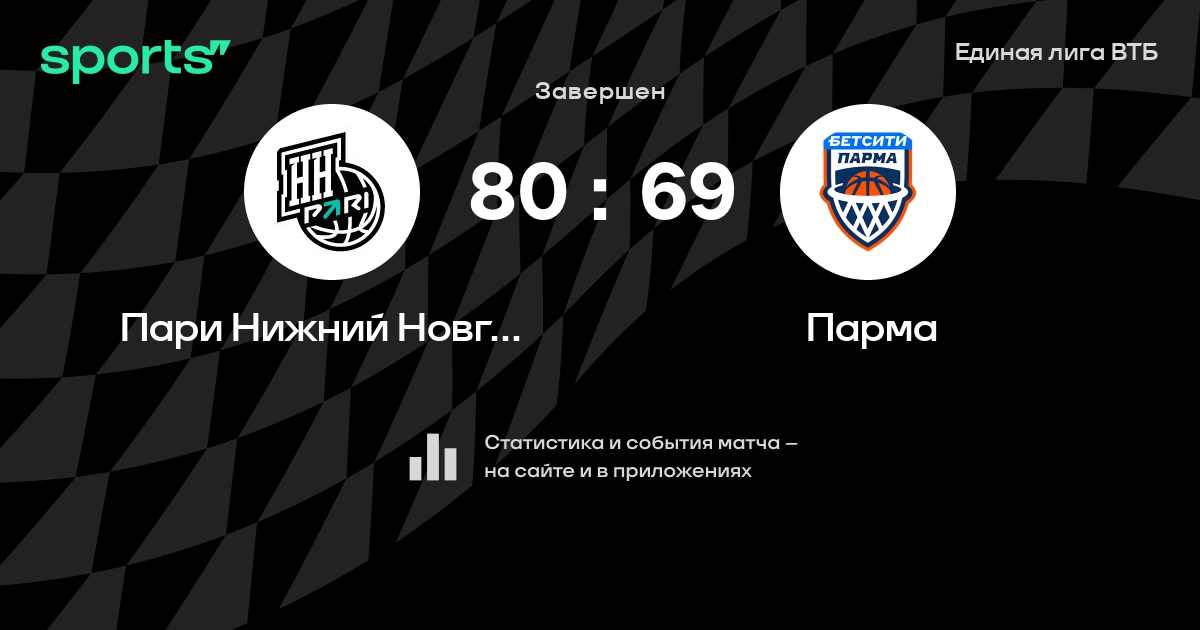 В прошедшем матче в рамках турнира Единая лига ВТБ (Плей-ин) состоялась встреча команд Пари Нижний Новгород - Парма в городе Нижний Новгород (Россия) на стадионе КРК Нагорный (вместимость - 5600)