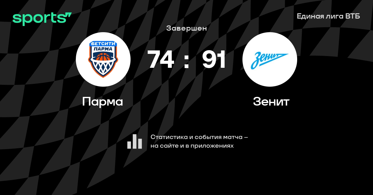 В прошедшем матче в рамках турнира Единая лига ВТБ (Четвертьфинал) состоялась встреча команд Парма - Зенит в городе Пермь (Россия) на стадионе УДС Молот (вместимость - 7000)