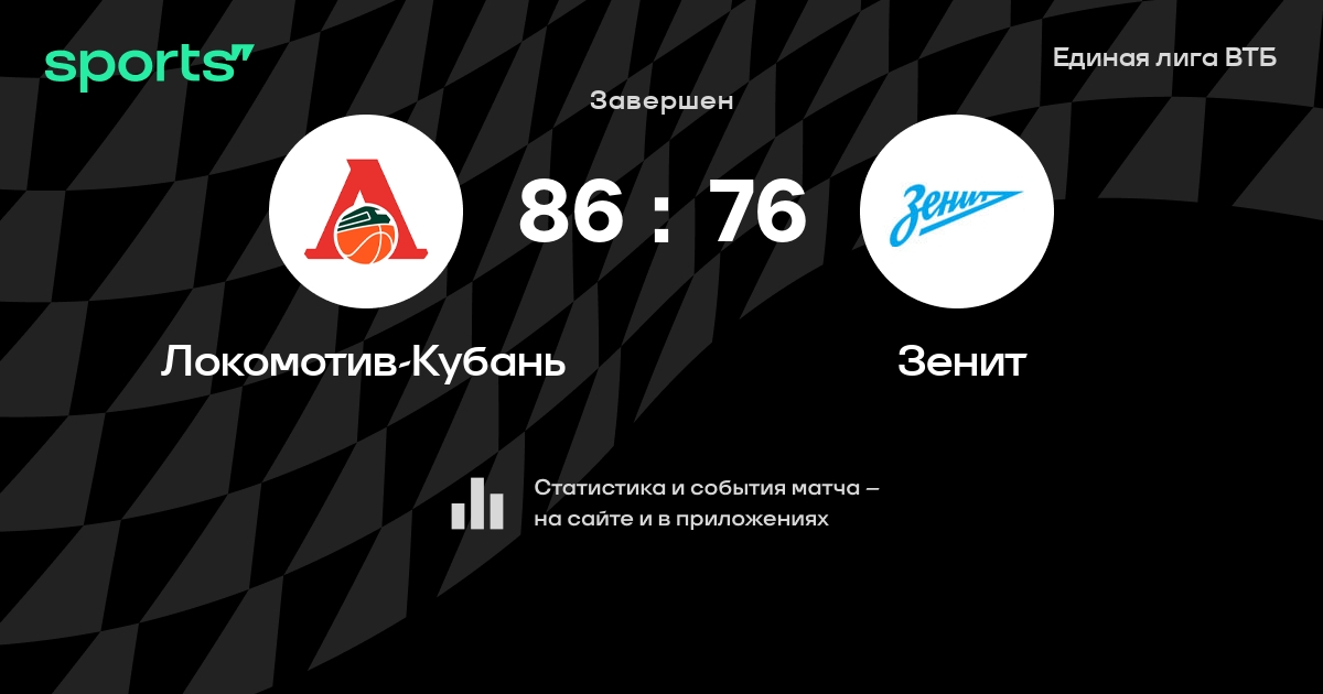 В прошедшем матче в рамках турнира Единая лига ВТБ (Полуфинал) состоялась встреча команд Локомотив-Кубань - Зенит в городе Краснодар (Россия) на стадионе Баскет-холл (вместимость - 7000)