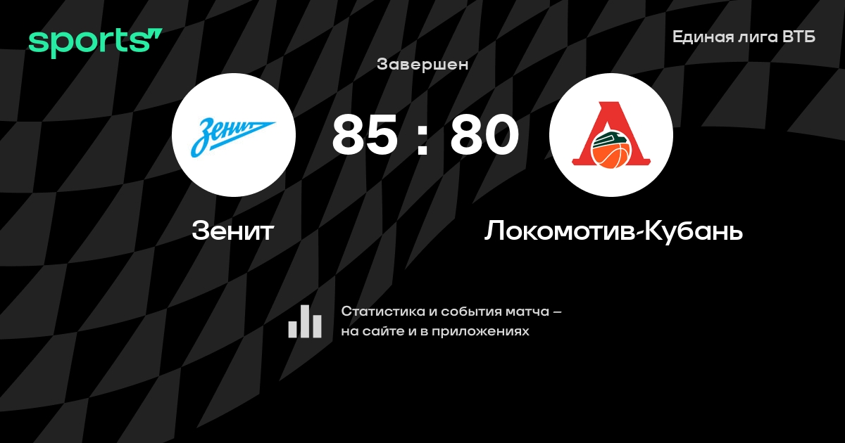 В прошедшем матче в рамках турнира Единая лига ВТБ (Полуфинал) состоялась встреча команд Зенит - Локомотив-Кубань в городе Санкт-Петербург (Россия) на стадионе КСК Арена (вместимость - 7120)