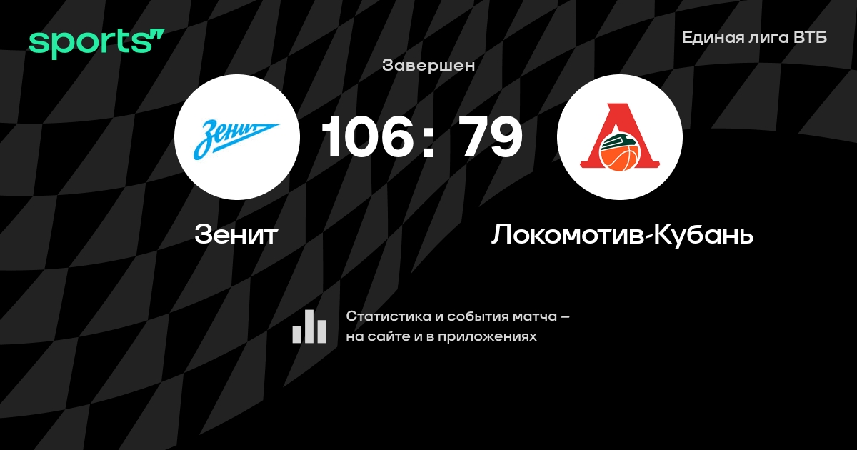 В прошедшем матче в рамках турнира Единая лига ВТБ (Полуфинал) состоялась встреча команд Зенит - Локомотив-Кубань в городе Санкт-Петербург (Россия) на стадионе КСК Арена (вместимость - 7120)