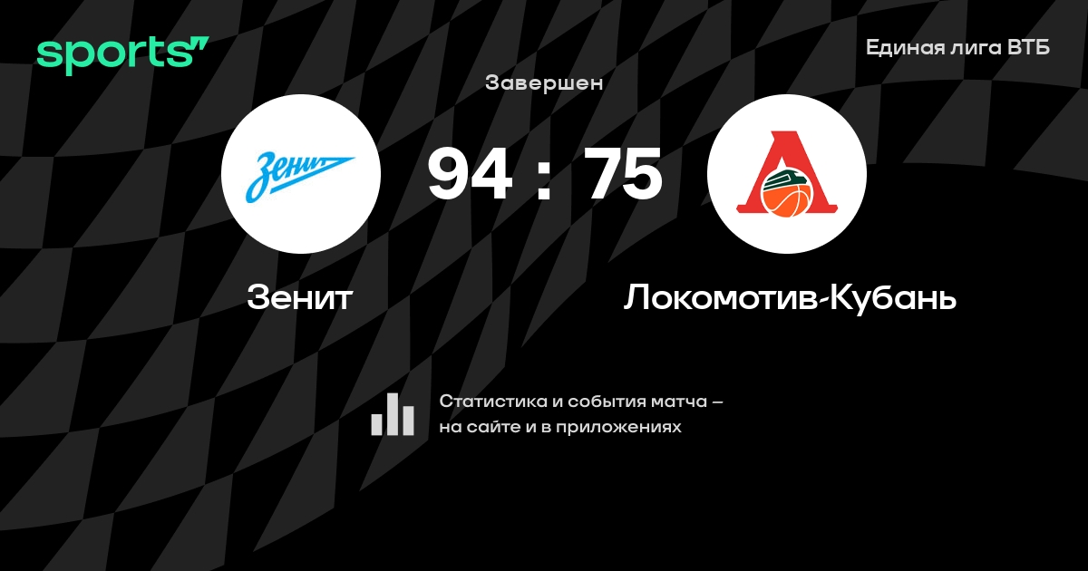 В прошедшем матче в рамках турнира Единая лига ВТБ (Полуфинал) состоялась встреча команд Зенит - Локомотив-Кубань в городе Санкт-Петербург (Россия) на стадионе КСК Арена (вместимость - 7120)