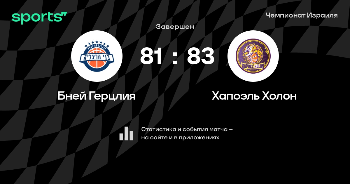В прошедшем матче в рамках турнира Чемпионат Израиля (Четвертьфинал) состоялась встреча команд Бней Герцлия - Хапоэль Холон в городе на стадионе Hayovel Herzeliya
