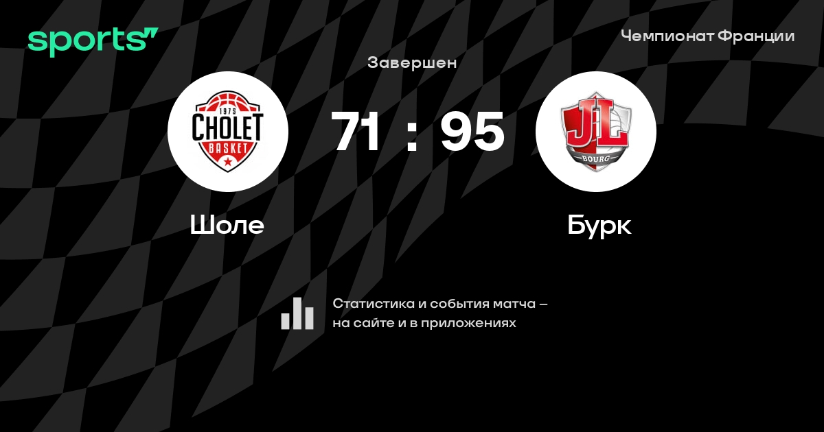 В прошедшем матче в рамках турнира Чемпионат Франции (Четвертьфинал) состоялась встреча команд Шоле - Бурк в городе на стадионе Salle de la Meilleraie
