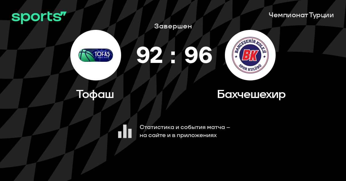 В прошедшем матче в рамках турнира Чемпионат Турции (Четвертьфинал) состоялась встреча команд Тофаш - Бахчешехир в городе на стадионе Tofaş Spor Salonu