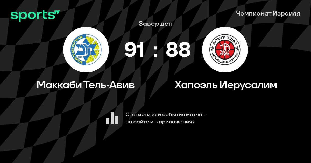 В прошедшем матче в рамках турнира Чемпионат Израиля (Финал) состоялась встреча команд Маккаби Тель-Авив - Хапоэль Иерусалим в городе Тель-Авив (Израиль) на стадионе Менора-Мивтахим Арена (вместимость - 11700)