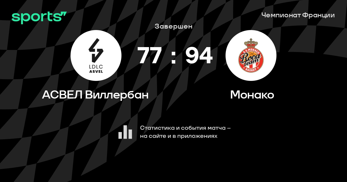 В прошедшем матче в рамках турнира Чемпионат Франции (Полуфинал) состоялась встреча команд АСВЕЛ Виллербан - Монако в городе Лион (Франция) на стадионе LDLC Арена (вместимость - 12523)
