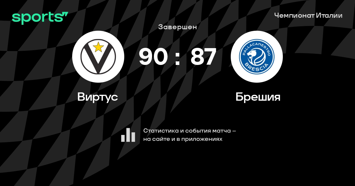 В прошедшем матче в рамках турнира Чемпионат Италии (Финал) состоялась встреча команд Виртус - Брешия в городе Болонья (Италия) на стадионе Виртус Арена (вместимость - 9980)