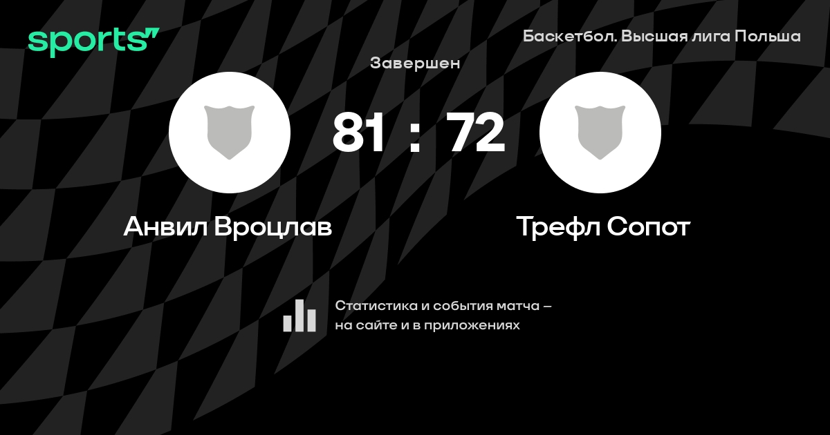 В прошедшем матче в рамках турнира Баскетбол. Высшая лига Польша состоялась встреча команд Анвил Вроцлав - Трефл Сопот