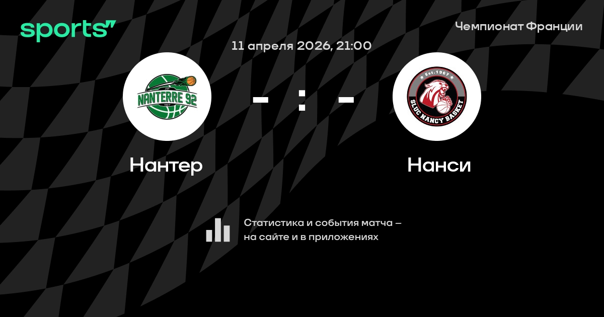 В предстоящем матче в рамках турнира Чемпионат Франции пройдет встреча команд Нантер - Нанси в городе на стадионе Palais des Sports Maurice Thorez.