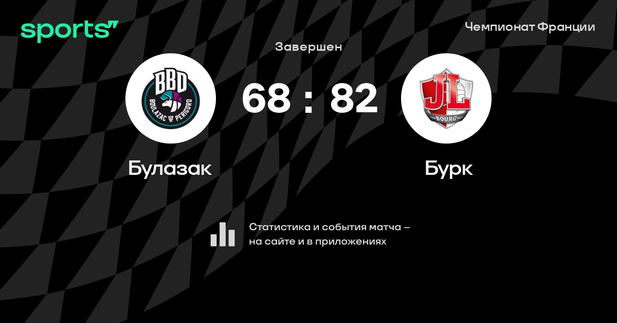 В прошедшем матче в рамках турнира Чемпионат Франции состоялась встреча команд Булазак - Бурк в городе на стадионе Salle des sports du Palio