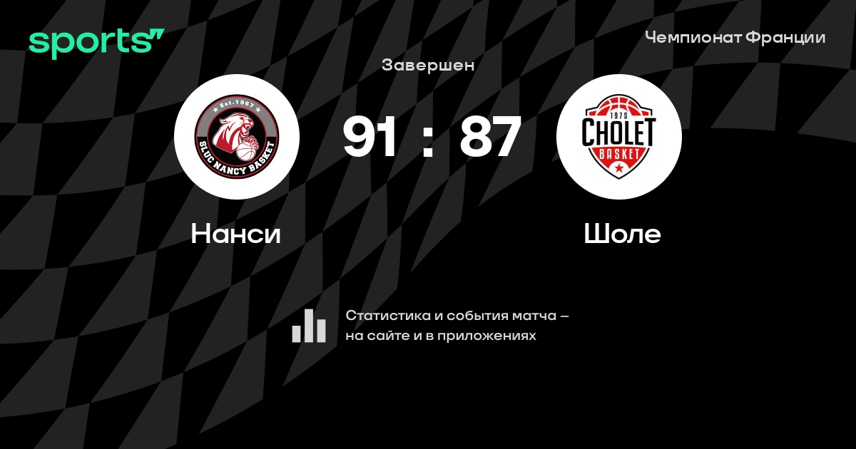 В прошедшем матче в рамках турнира Чемпионат Франции состоялась встреча команд Нанси - Шоле в городе на стадионе Palais des Sports Jean Weille