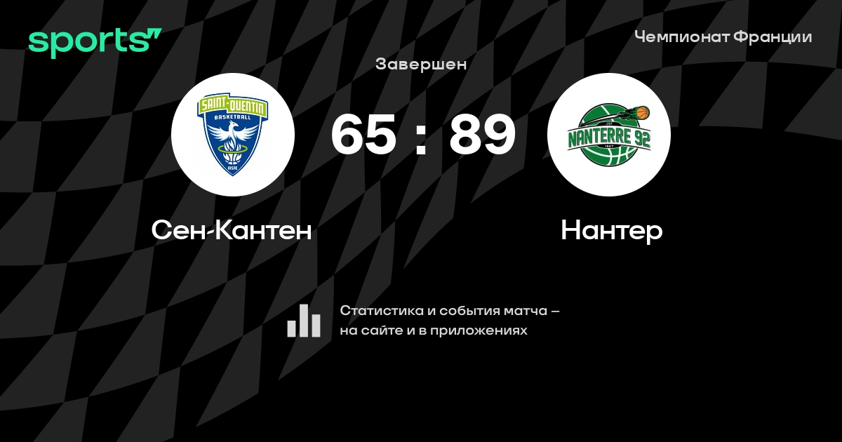 В прошедшем матче в рамках турнира Чемпионат Франции состоялась встреча команд Сен-Кантен - Нантер в городе на стадионе Palais des Sports Pierre-Rate