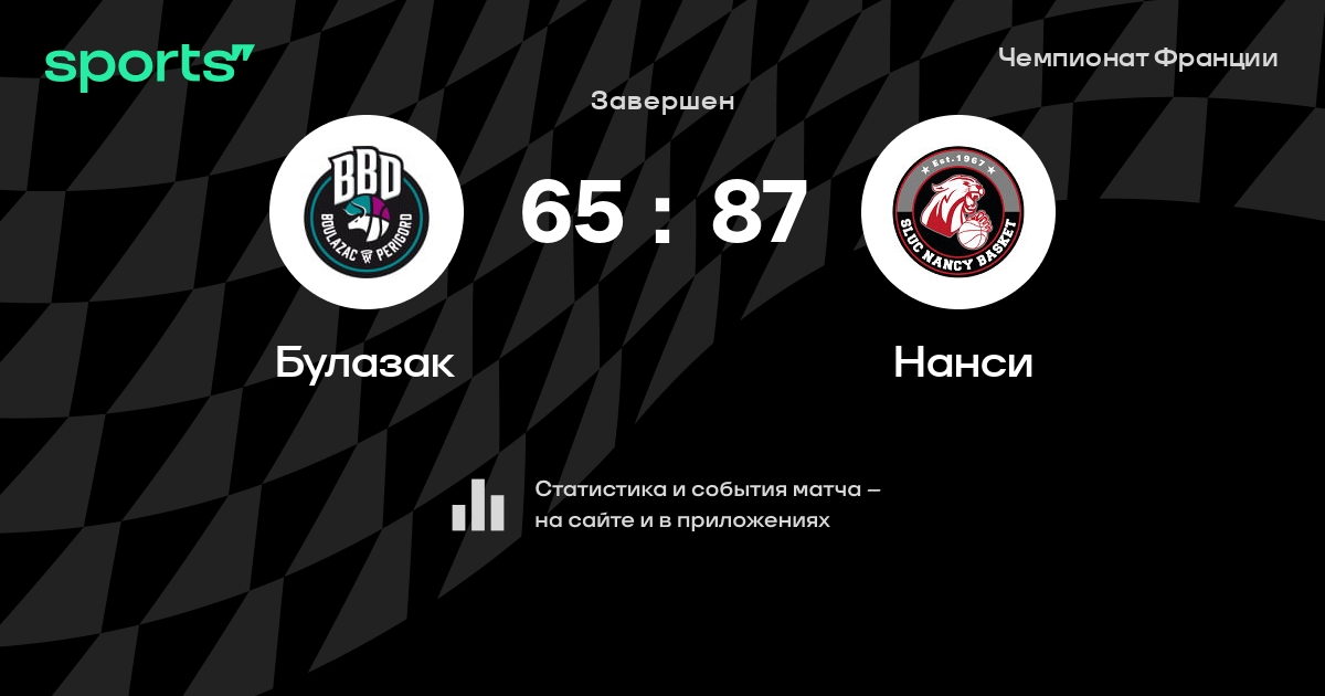 В прошедшем матче в рамках турнира Чемпионат Франции состоялась встреча команд Булазак - Нанси в городе на стадионе Salle des sports du Palio