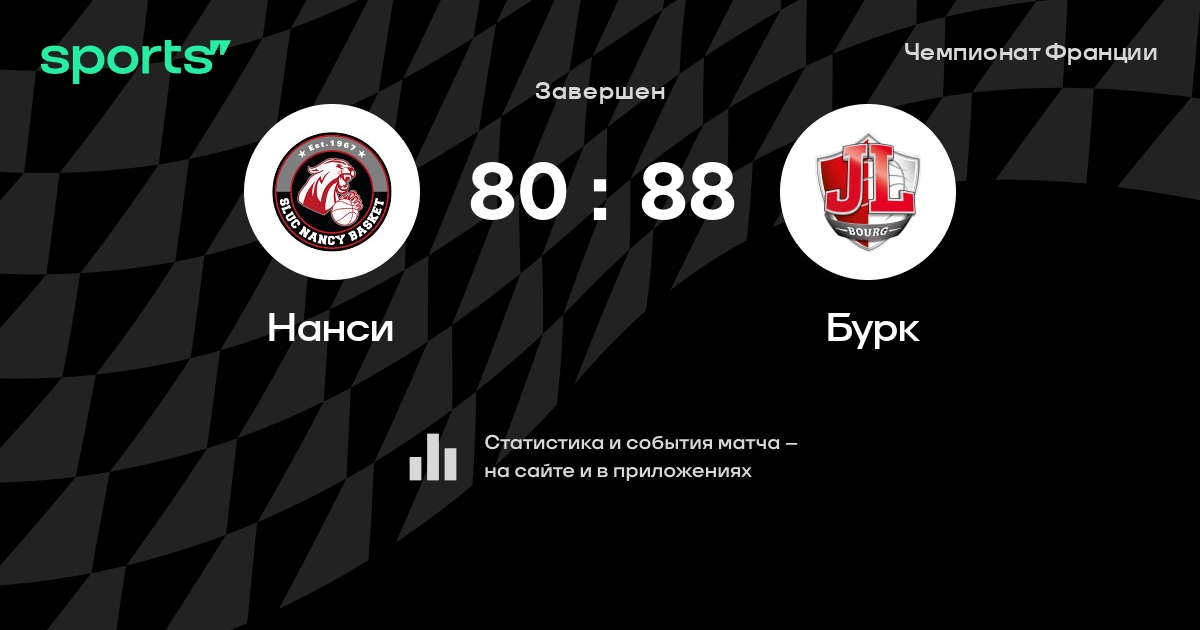 В прошедшем матче в рамках турнира Чемпионат Франции состоялась встреча команд Нанси - Бурк в городе на стадионе Palais des Sports Jean Weille