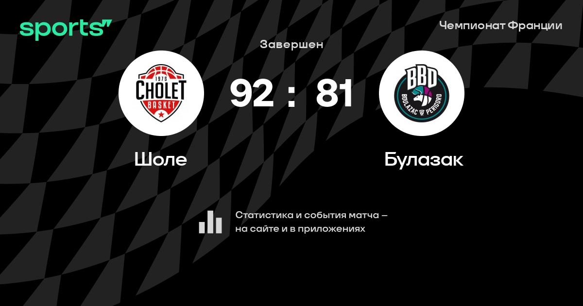 В прошедшем матче в рамках турнира Чемпионат Франции состоялась встреча команд Шоле - Булазак в городе на стадионе Salle de la Meilleraie