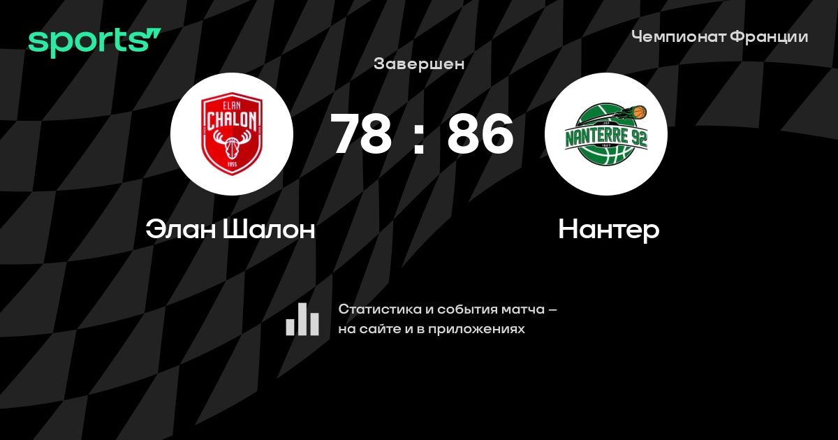 В прошедшем матче в рамках турнира Чемпионат Франции состоялась встреча команд Элан Шалон - Нантер в городе на стадионе Le Colisée