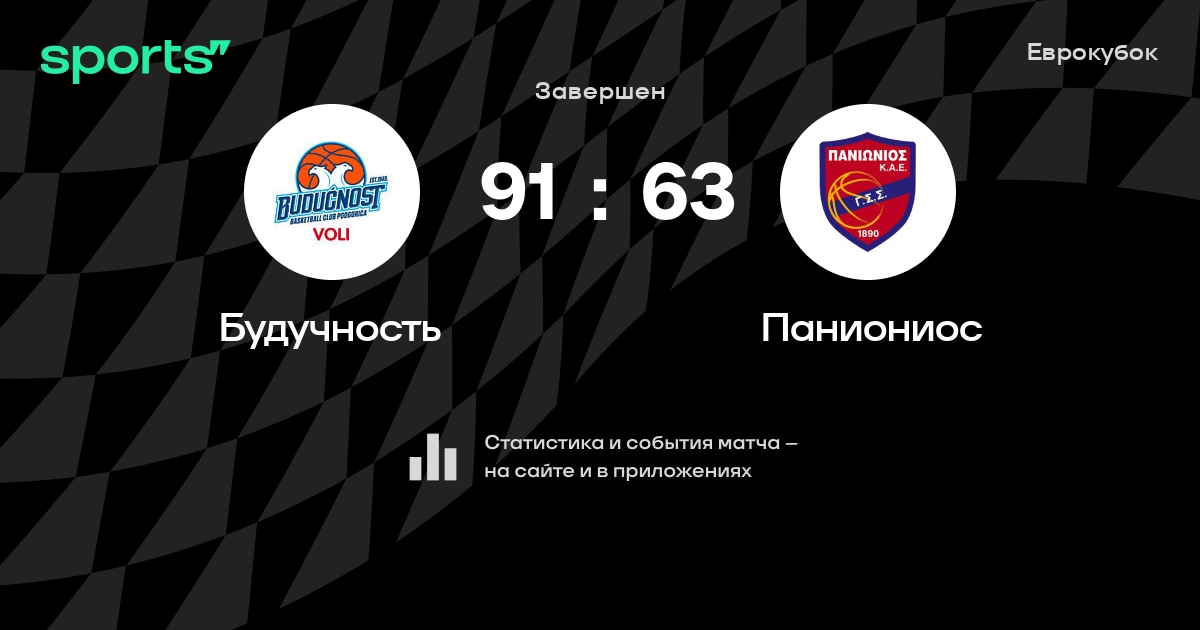 В прошедшем матче в рамках турнира Еврокубок состоялась встреча команд Будучность - Паниониос в городе Подгорица (Черногория) на стадионе Морача (вместимость - 6000)