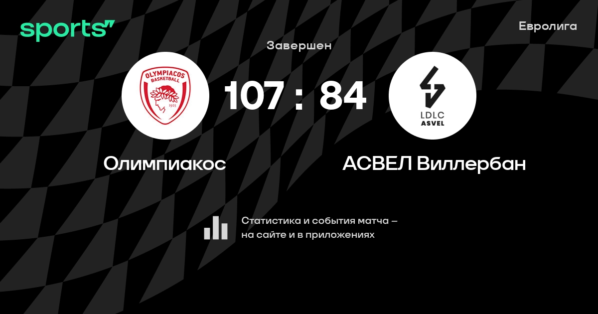 В прошедшем матче в рамках турнира Евролига состоялась встреча команд Олимпиакос - АСВЕЛ Виллербан в городе Пирей (Греция) на стадионе Арена Мира и Дружбы (вместимость - 12171)