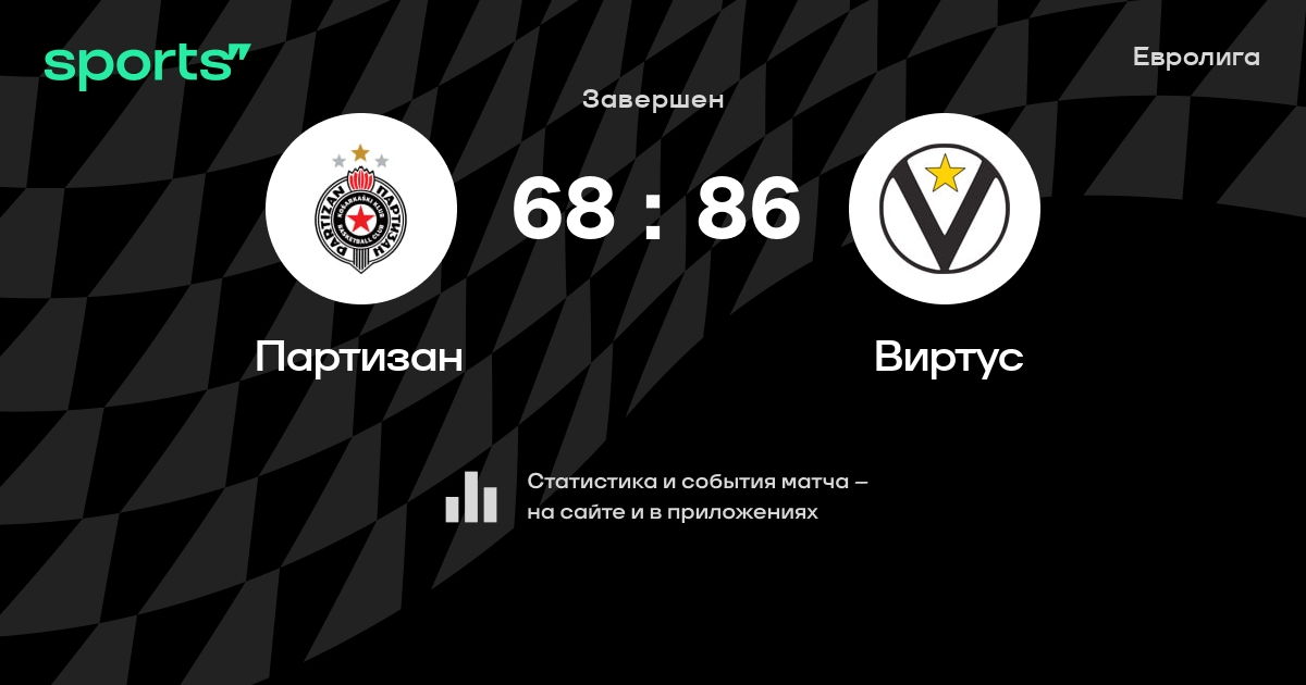 В прошедшем матче в рамках турнира Евролига состоялась встреча команд Партизан - Виртус в городе Белград (Сербия) на стадионе Белград Арена (вместимость - 22386)