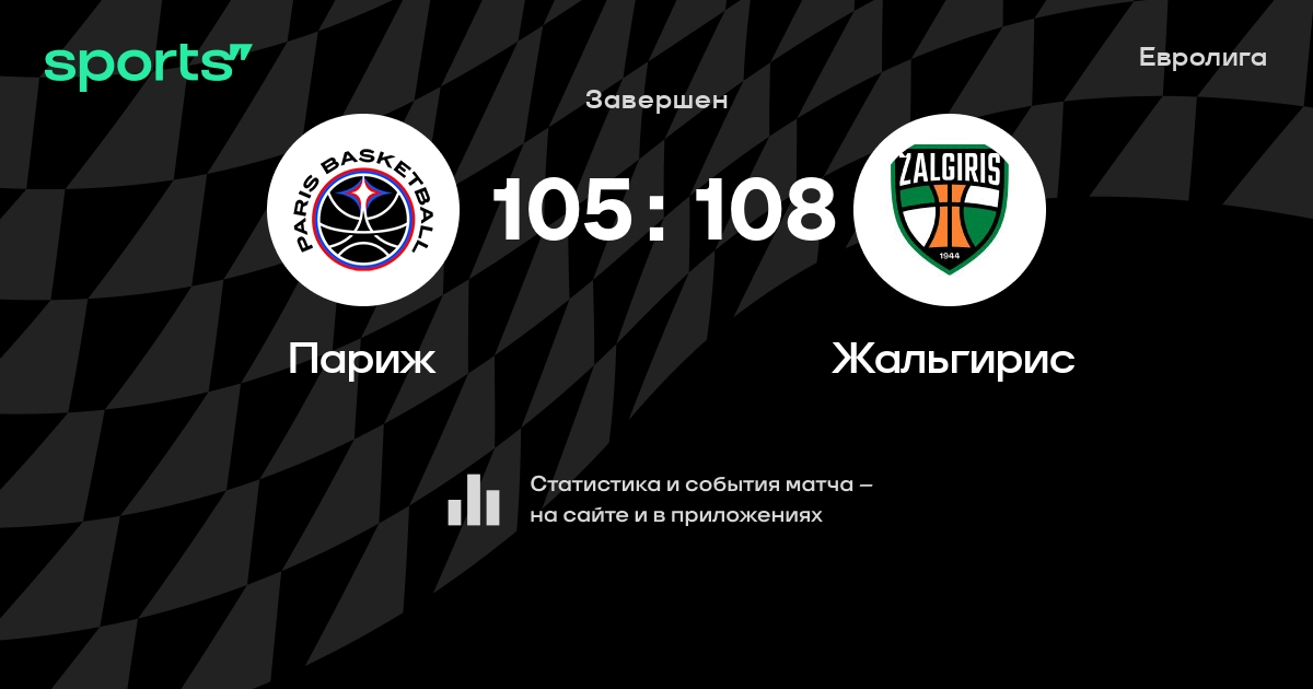 В прошедшем матче в рамках турнира Евролига состоялась встреча команд Париж - Жальгирис в городе Париж (Франция) на стадионе Адидас Арена (вместимость - 8000)