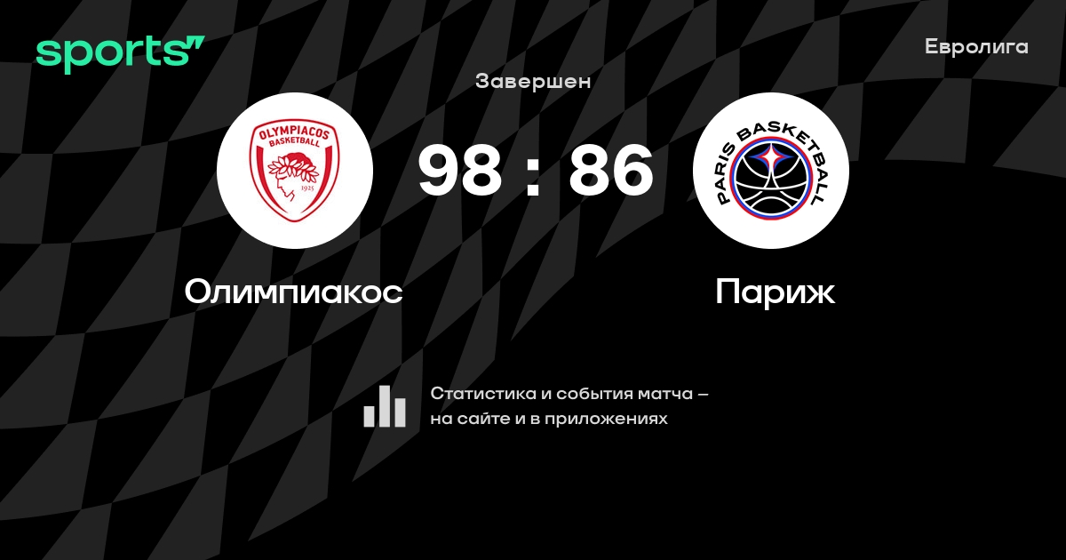 В прошедшем матче в рамках турнира Евролига состоялась встреча команд Олимпиакос - Париж в городе Пирей (Греция) на стадионе Арена Мира и Дружбы (вместимость - 12171)