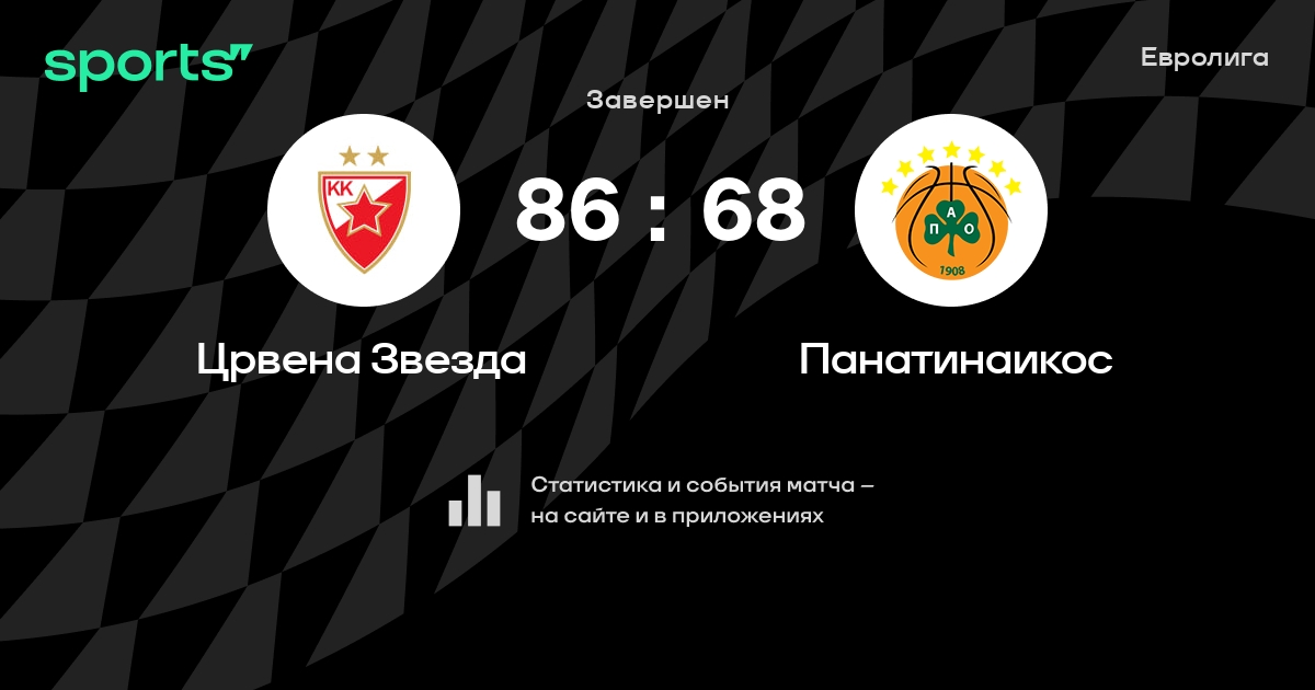 В прошедшем матче в рамках турнира Евролига состоялась встреча команд Црвена Звезда - Панатинаикос в городе Белград (Сербия) на стадионе Белград Арена (вместимость - 22386)