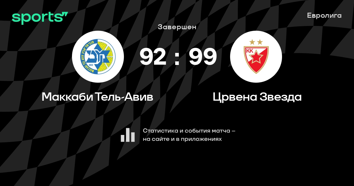 В прошедшем матче в рамках турнира Евролига состоялась встреча команд Маккаби Тель-Авив - Црвена Звезда в городе Белград (Сербия) на стадионе Александар Николич Холл (вместимость - 7000)