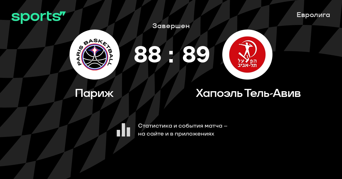 В прошедшем матче в рамках турнира Евролига состоялась встреча команд Париж - Хапоэль Тель-Авив в городе Париж (Франция) на стадионе Адидас Арена (вместимость - 8000)