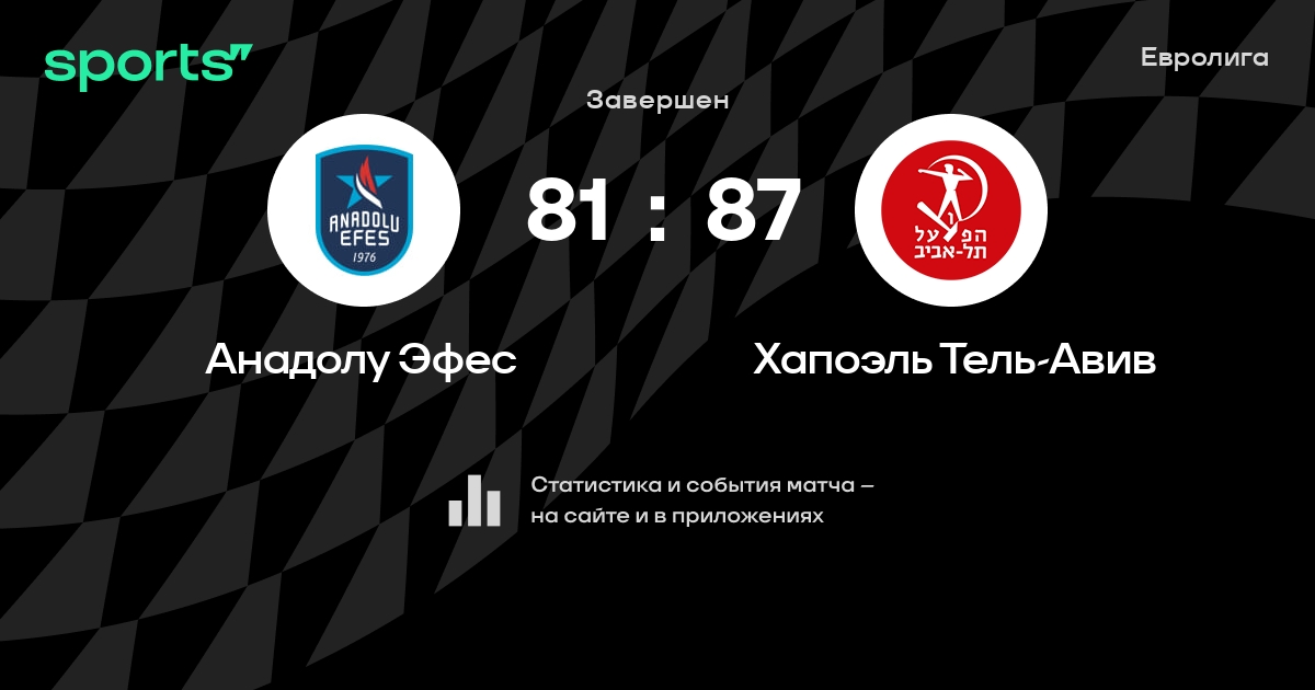 Как прошел матч, смотрите в текстовой трансляции Анадолу Эфес - Хапоэль Тель-Авив на Sports.ru