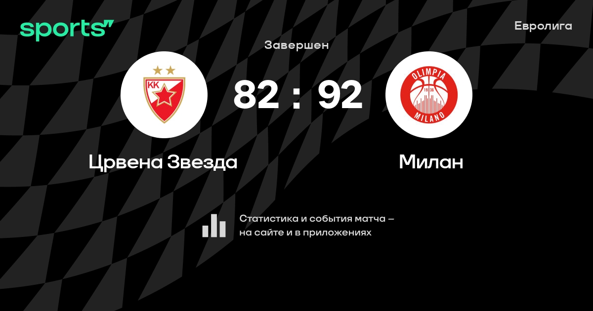 В прошедшем матче в рамках турнира Евролига состоялась встреча команд Црвена Звезда - Милан в городе Белград (Сербия) на стадионе Белград Арена (вместимость - 22386)