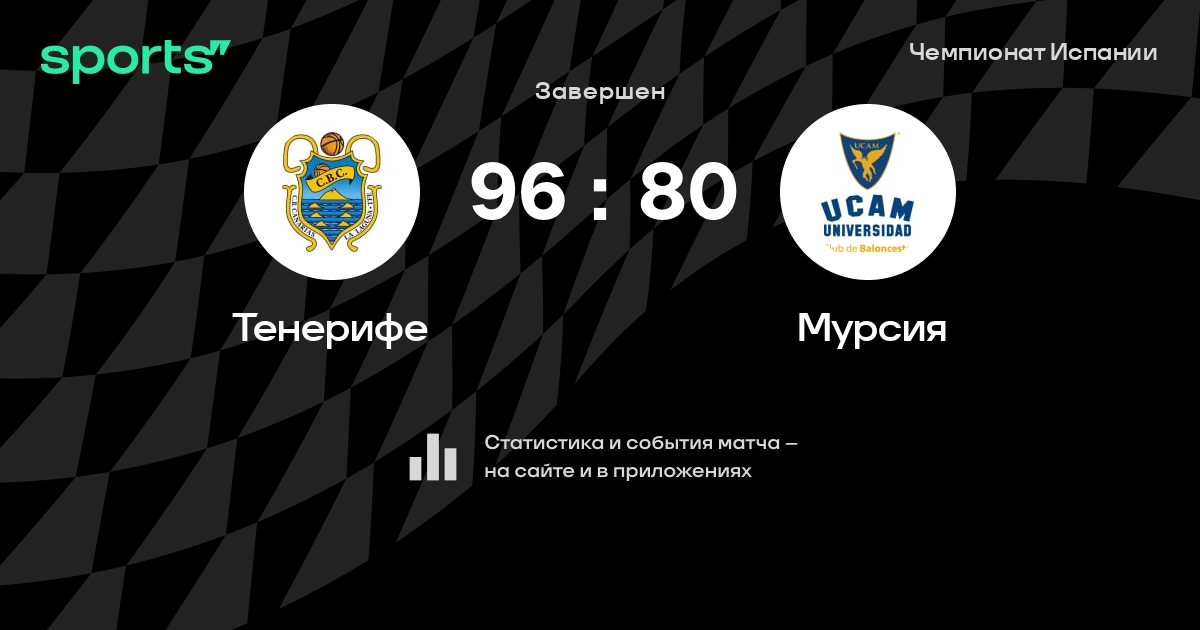 В прошедшем матче в рамках турнира Чемпионат Испании состоялась встреча команд Тенерифе - Мурсия в городе Tenerife на стадионе Pabellon Insular Santiago Martin