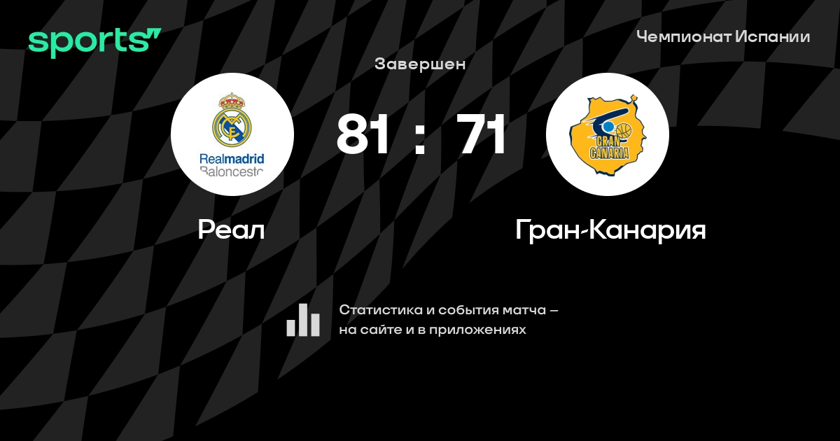В прошедшем матче в рамках турнира Чемпионат Испании состоялась встреча команд Реал - Гран-Канария в городе Мадрид (Испания) на стадионе Мовистар Арена (вместимость - 15000)