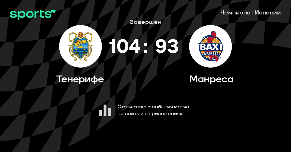 В прошедшем матче в рамках турнира Чемпионат Испании состоялась встреча команд Тенерифе - Манреса в городе Tenerife на стадионе Pabellon Insular Santiago Martin