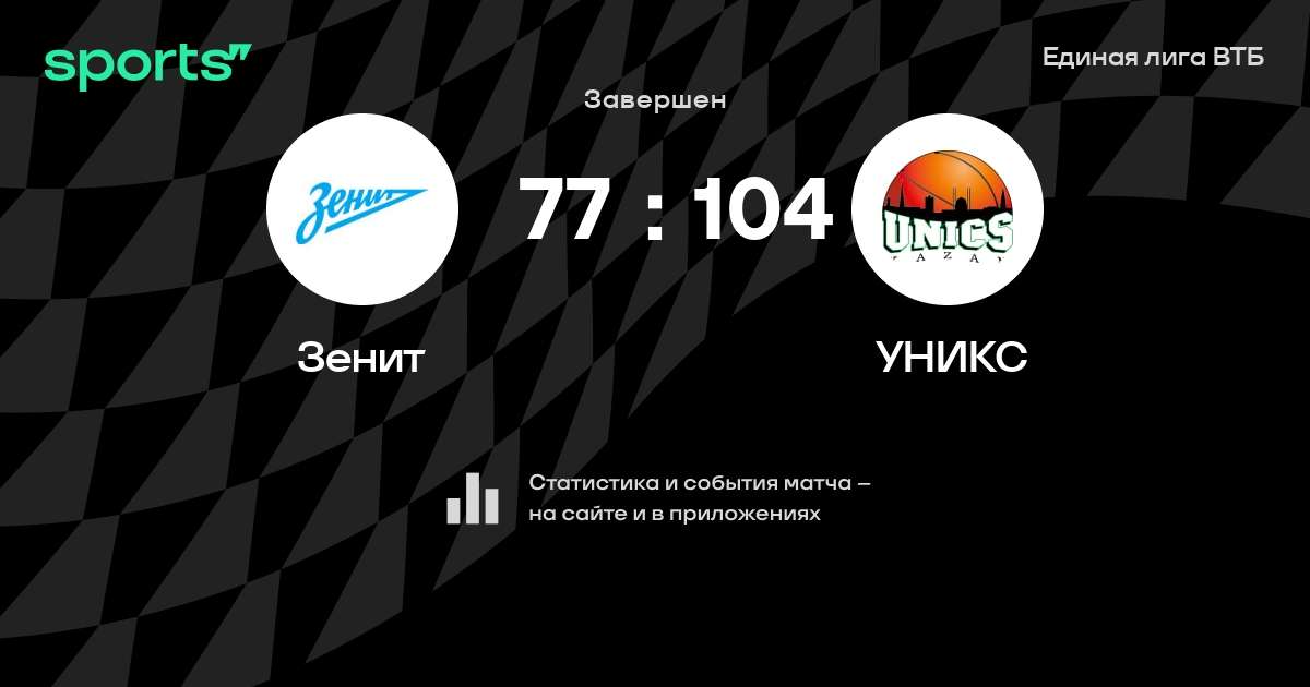 В прошедшем матче в рамках турнира Единая лига ВТБ состоялась встреча команд Зенит - УНИКС в городе Санкт-Петербург (Россия) на стадионе КСК Арена (вместимость - 7120)