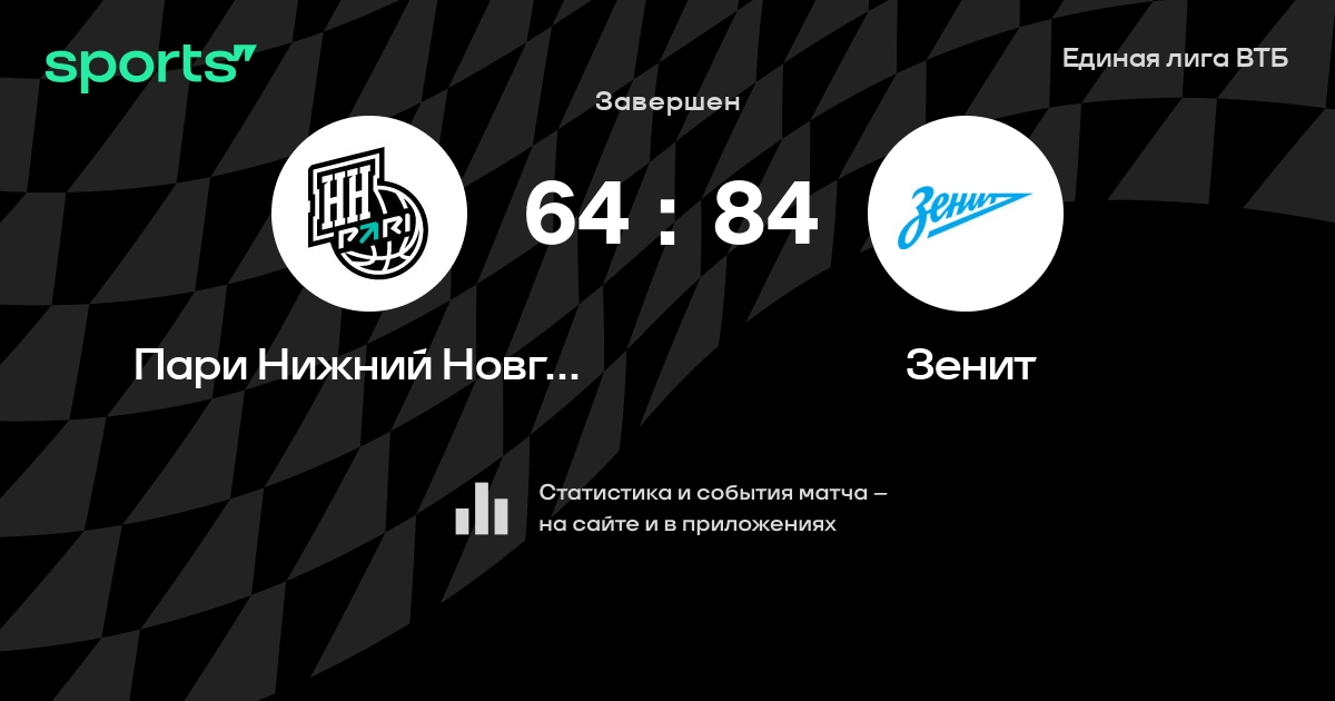 В прошедшем матче в рамках турнира Единая лига ВТБ состоялась встреча команд Пари Нижний Новгород - Зенит в городе Нижний Новгород (Россия) на стадионе КРК Нагорный (вместимость - 5600)