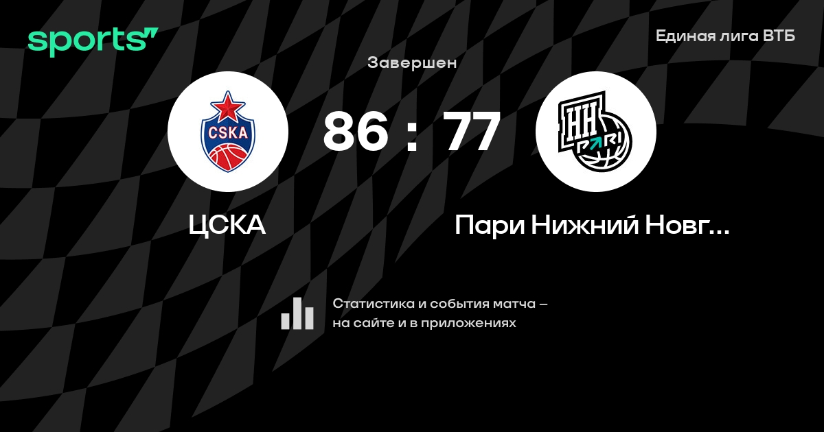В прошедшем матче в рамках турнира Единая лига ВТБ состоялась встреча команд ЦСКА - Пари Нижний Новгород в городе Москва (Россия) на стадионе Баскет Холл Москва (вместимость - 5000)